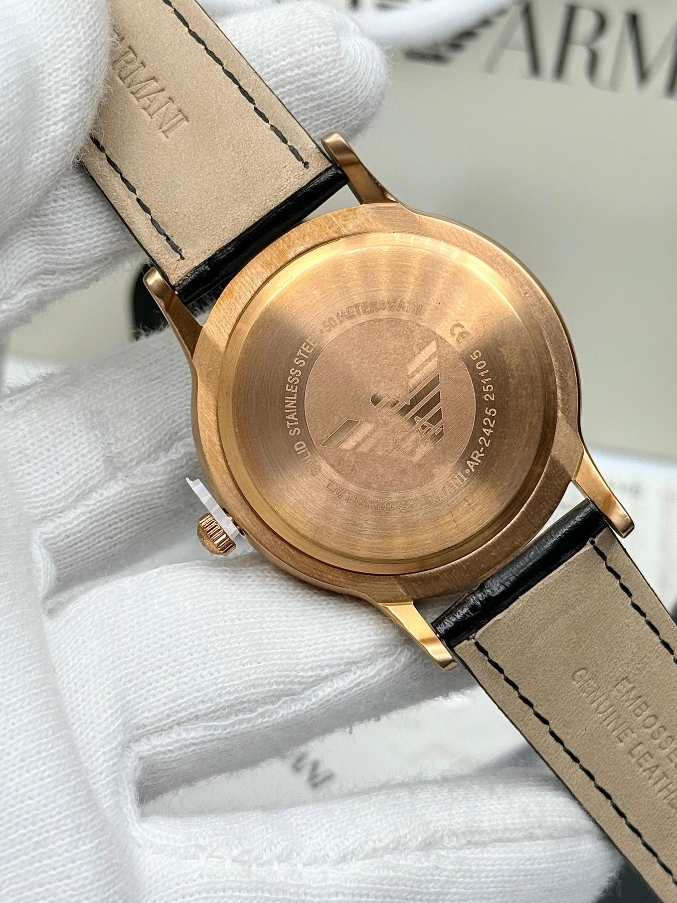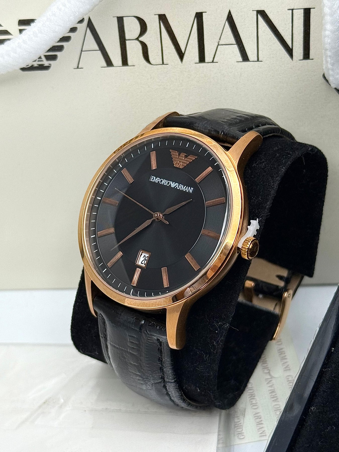 ⬛🟧 Emporio Armani Renato Quartz Black Dial Leather Strap Watch – AR2425 | 43mm